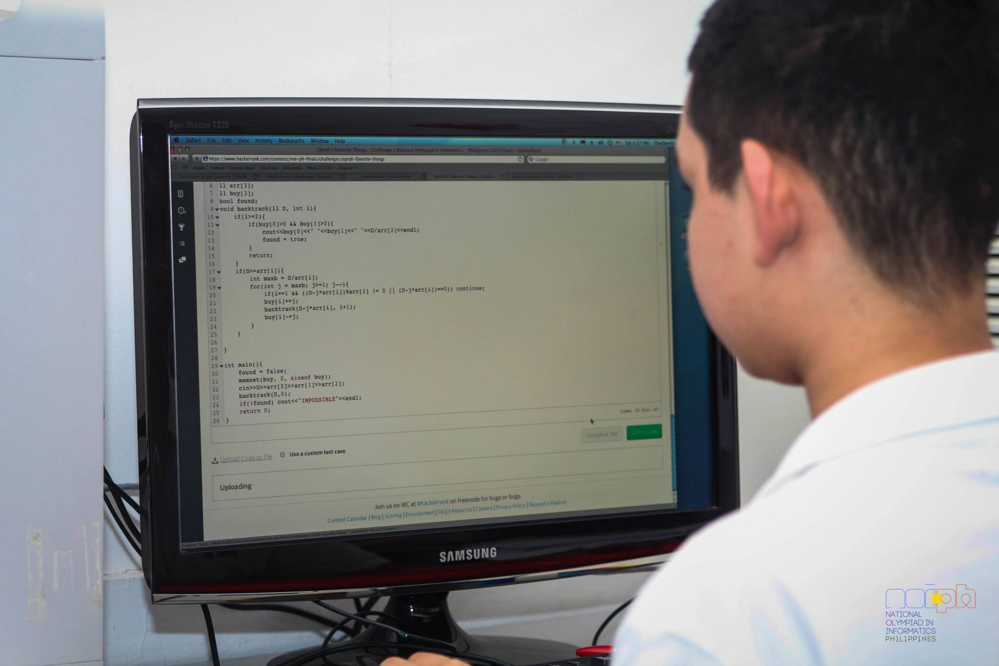 The National Olympiad in Informatics Philippines On-Site Finals Round was held last Saturday, 5 July 2014. The top ten competitors of the national elimination round at the Kalibrr Headquarters. Aldrich Asuncion from Ateneo de Manila High School and Miguel Lorenzo Ildesa from Philippine Science High school were the only contestants to completely solve C: xoxo. With this, both of them snagged first and second place during the NOI.PH National Finals.